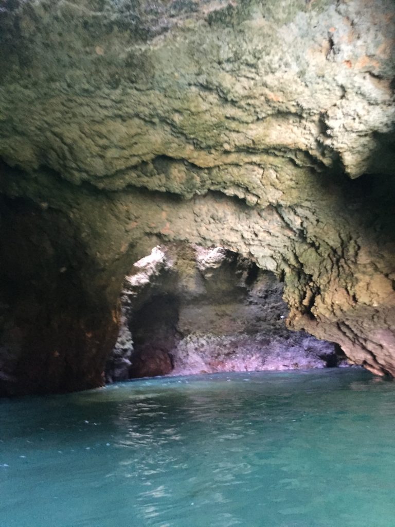 De grotten van Ponta da Piedade zijn prachtig. Het bestaat uit grillige rotsformaties met diepe grotten waar de zee diepe inhammen heeft gemaakt waar je met de dinghy naar binnen kunt varen. Je ziet dan een pracht aan kleuren met helder blauw water.