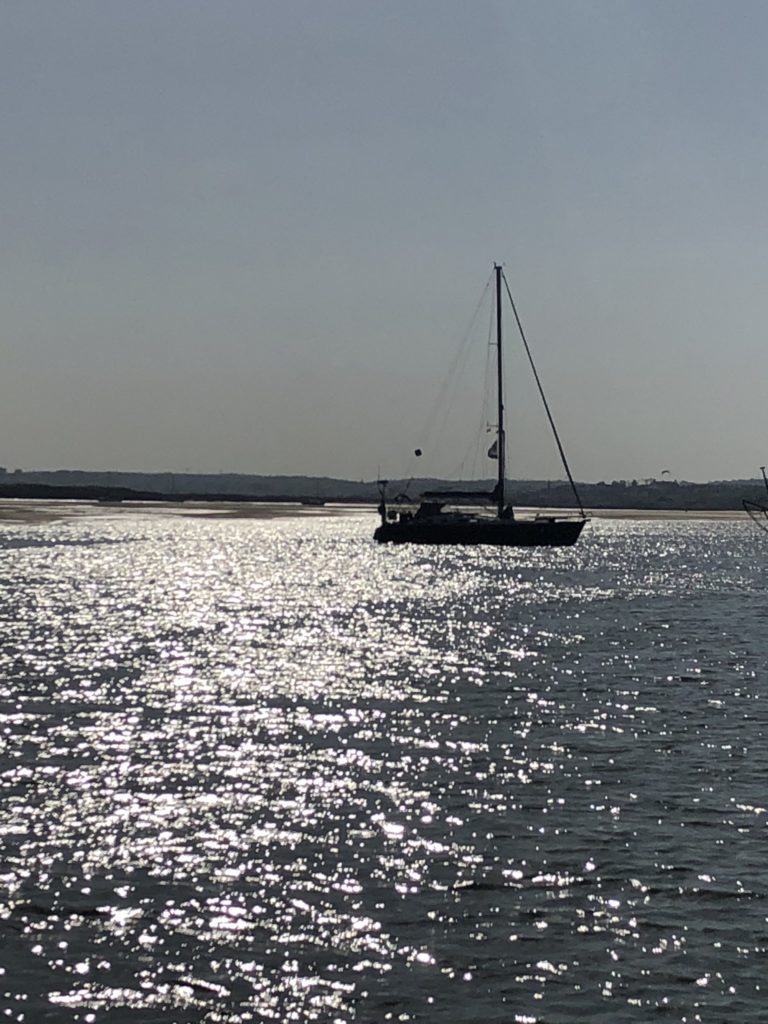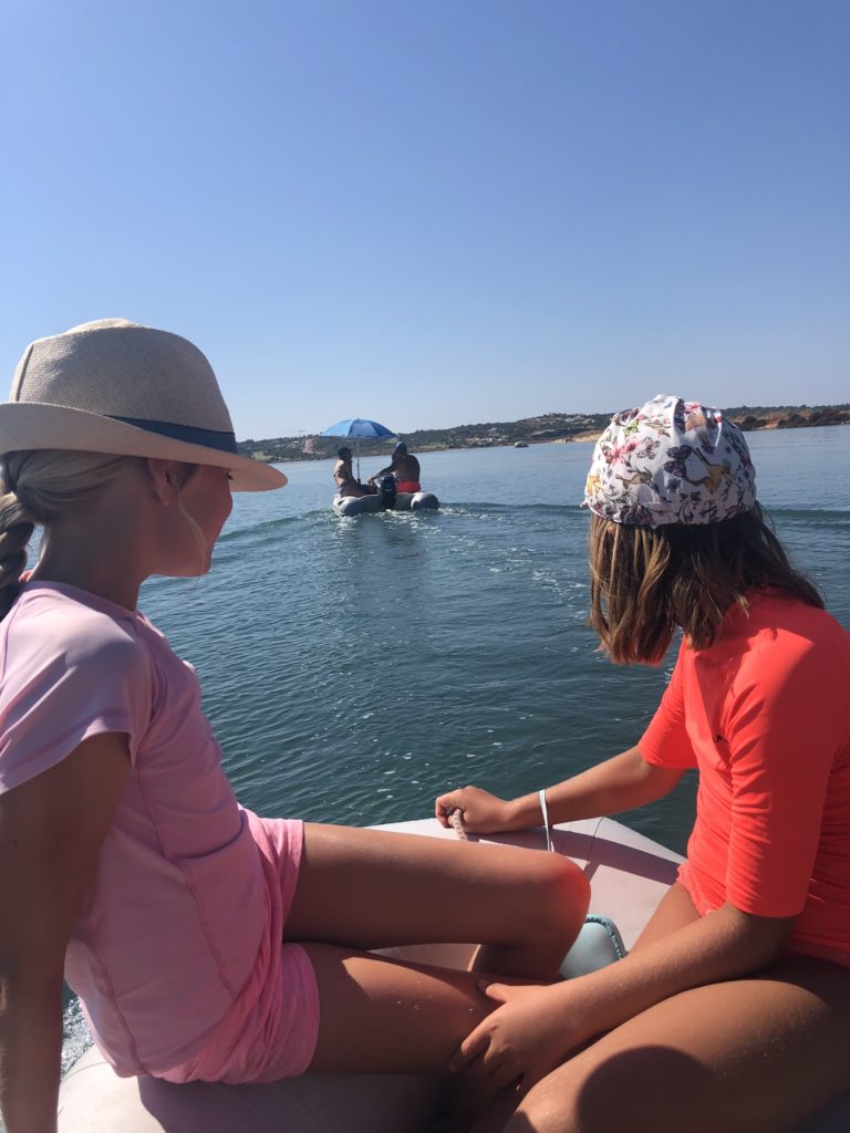 Wij hebben afgesproken met Jurgen en Anouschka van DeSaar. Wij hebben hen ontmoet op de vertrekkersdag in het voorjaar. Zij hebben ongeveer dezelfde plannen als wij en hebben twee dochters (Linde en Yara) van de zelfde leeftijd als Kiki en Noor. Jurgen en Anouschka zijn een maand eerder vertrokken en gingen als een speer richting het zuiden. Wij bleven contact houden maar liepen niet echt op hen in. Tot nu toe. Zij liggen in de baai van Alvor, een leuke plaatsje in de buurt van Portimao. De baai is eigenlijk de monding van een rivier en door het getij valt en groot deel van de baai droog bij laagwater.