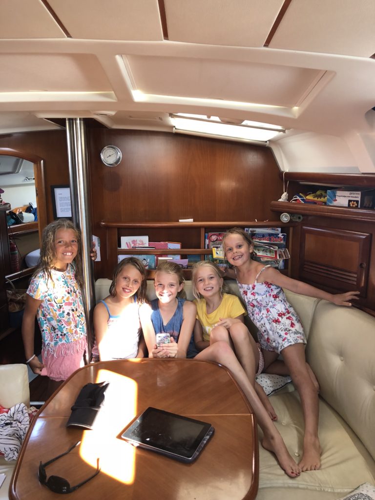 We gaan weer voor anker iets verder bij de kant want ons oude plekje is al bezet. We liggen vlak langs de rand van de zandbank maar het is goed te doen. We krijgen iets meer handigheid in het ankeren. De kinderen hebben school en ’s middags gaan ze zwemmen en suppen. Aan het eind van de middag komt een boot uit IJsland steeds dichter bij ons tot ze naast ons liggen. We laten ze weten dat hun anker krabt. Ze halen het anker op en gaan verderop in de baai opnieuw voor anker. De rust keert terug tot we realiseren dat er meer boten aan het krabben zijn. Dan pas realiseren we ons dat wij het zijn waar het anker krabt. Ik start de motor en die maakt een raar geluid. Direct motor uit want er zit waarschijnlijk een lijn in de schroef. Dat blijkt ook zo te zijn. We zijn door de stroming en de wind over ons eigen anker gedreven en de tippinglijn (dat is een lijn aan de achterkant van het anker om hem omhoog te kunnen halen als het anker bijvoorbeeld achter een steen vastzit). Doordat de tippinglijn in de schroef zat, trok die het anker met zich mee en daardoor gingen we krabben. Met de dinghy probeer ik de boot op zijn plaats te houden. Door de stroming drijven we richting andere boten en door de wind worden we richting de zandplaat geduwd. We raken de grond al en het is afnemend water dus dan komen we niet meer los. Jurgen en onze buren die toevallig langs komen varen duwen de boot richting dieper water. Jurgen bedenkt zich geen moment en duikt het water in en haalt de lijn uit de schroef. Gelukkig kan ik weer varen en gaan we opnieuw voor anker. Gelukkig liep dit mede door alle hulp goed af en gelukkig zaten we op de boot toen het gebeurde. Door deze actie hebben we wel weer een deuk in ons zelfvertrouwen gekregen met ankeren. Ankeren is nog niet echt ons ding…