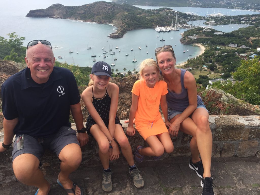 Even verderop ligt een Spaanse boot, Saramia van Jorge en Maria met hun dochtertjes Sara en Mia van vier en zes. Zij hebben ook de ARC gezeild en lagen aan dezelfde steiger als wij. Mirjam en Maria hebben via Instagram altijd contact gehouden en eindelijk liggen we weer bij elkaar.