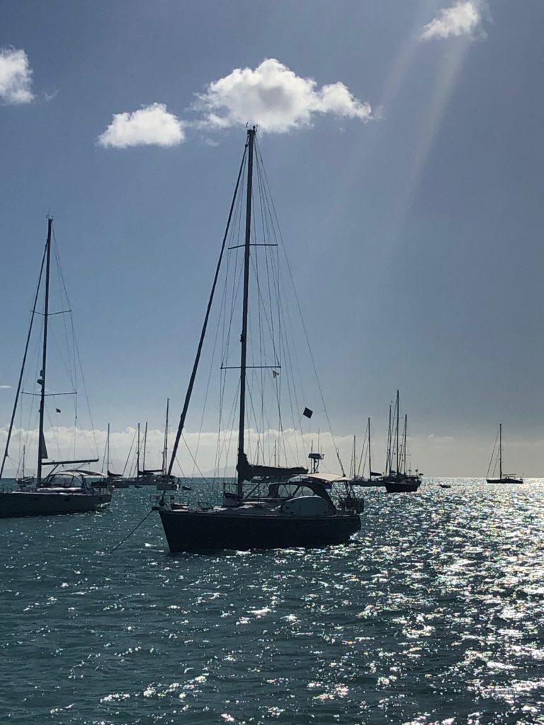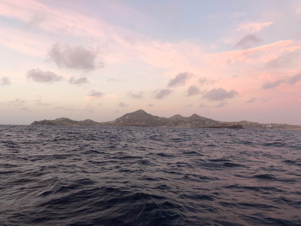 We zijn klaar om te vertrekken naar Sint Maarten. We nemen afscheid van Field Trip en varen de baai uit richting Sint Maarten. Van Antigua naar Sint Maarten is het ruim 100 mijl. Daar doen we zo’n 22 uur over. Na een uurtje zien we op de AIS een andere bekende ARC boot varen. De Duitse boot Gepetho van Sacha en Bianca met hun twee zonen. Ze varen net richting Jolly Harbour en we roepen ze op via de marifoon. Kiki en Julius zijn dikke vrienden geworden in St. Lucia en ze praten samen even over de marifoon. Daarna nemen we definitief afscheid van Antigua en zien haar langzaam aan de horizon verdwijnen.Ook de zon begint te zakken en al snel wordt het donker. Het is koud en er staat een harde wind. We hebben alleen de genua op en met een flinke vaart zeilen we richting Sint Maarten. Vroeg in de ochtend passeren we St. Barthelemy.