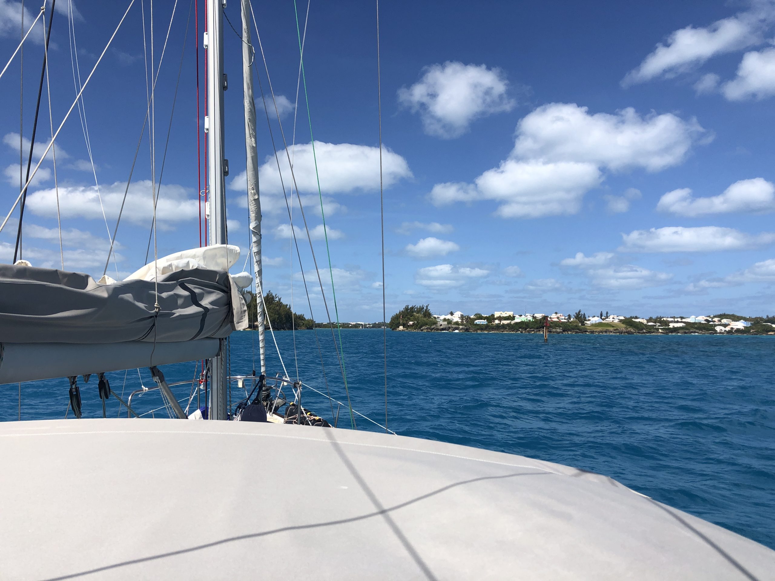 We zeilen richting land maar het lijkt of we niet vooruit komen. Het schiet niet op. Het log werkt niet meer waardoor we niet goed kunnen zien of we stroom tegen of mee hebben, maar het lijkt wel of er in dit gebied alleen maar stroom tegen is. Wel zien we dat de GSP snelheid niet echt hoog is, dus dat lijkt onze gedachte te bevestigen. Na een dag zeilen langs de kust van Bermuda ziet het er naar uit dat we in de ochtend de baai van St George binnen kunnen varen. Dat komt goed uit want we willen niet bij nacht de baai binnenvaren vanwege de vele duizenden riffen die voor de kust van Bermuda liggen. We willen zicht hebben als we daar naar binnen varen. Zodra we Bermuda in de verte zagen liggen, hebben we ons aangemeld bij Bermuda radio. Zij houden in de gaten welke boten aankomen en vertrekken en zij heten ons welkom over de radio. Het is erg druk op Bermuda omdat de ARC (Atlantic Rally for Cruisers) daar vertrekt richting de Azoren. Niet alleen ARC boten maar ook vele andere boten die de oversteek naar Europa gaan maken. Dit is het moment om dat te doen. Over een maand begint het Hurricane seizoen weer en dan kan het zomaar zijn dat er een Hurricane over Bermuda gaat razen. Ook het weer wordt minder naarmate je later in het jaar terug wilt varen.