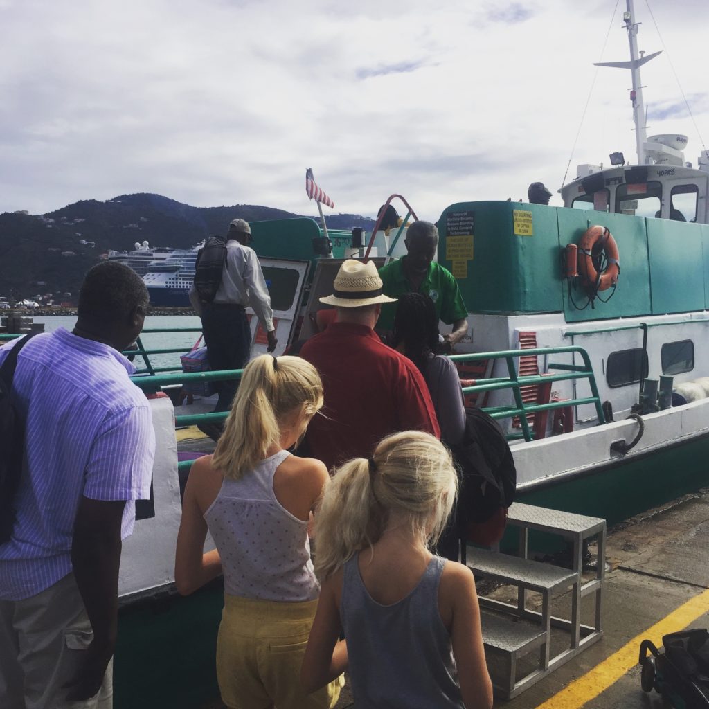 We gaan op tijd terug naar de ferry om terug te gaan naar de BVI’s. We hebben onze stempels en hebben hier nu niets te zoeken. We gaan straks ook bij voorkeur naar St. John’s. Daar is meer natuur en rust dan in de baai van Charlotte Amalia waar dagelijks meerdere cruiseschepen aanmeren en een andere sfeer met zich meebrengen.