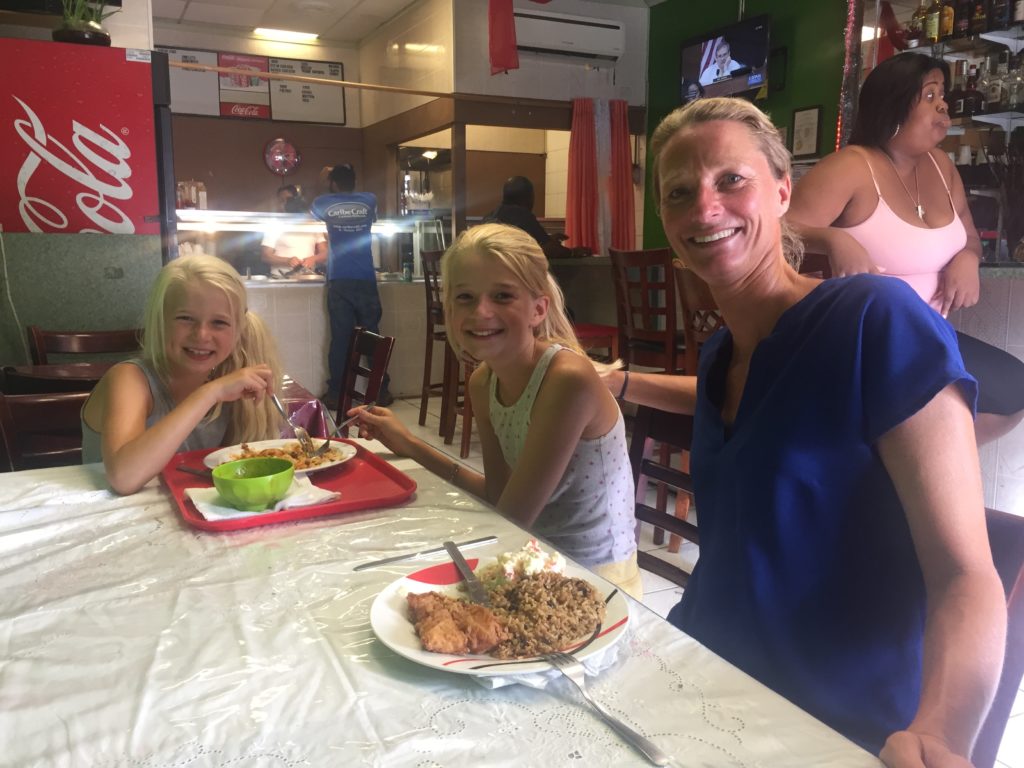 Field trip moet nog inklaren en we moeten wat boodschappen halen. Ook moet ik nog een hendel voor de motor van de dinghy halen. Die is een tijdje geleden afgebroken. Samen met Mike gaan we op de vouwfietsen naar Spanish Town aan de andere kant van de heuvels. Terwijl Mike gaat inklaren, ga ik boodschappen halen en naar de Yamaha dealer. Helaas hebben ze het onderdeel niet en het duurt minimaal een paar weken voordat het hier is, dus dat gaat het niet worden.