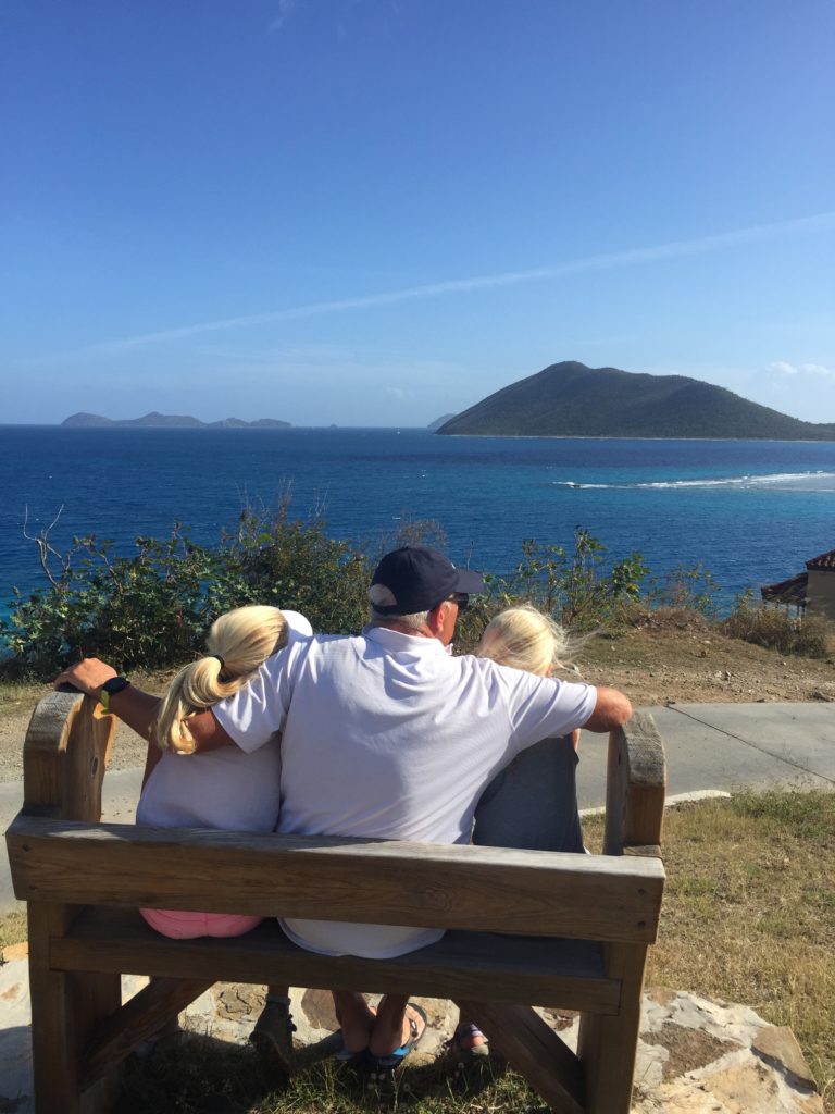 Marina Cay is een eiland waar de bekende bar ‘Pussers’ is gevestigd. Voor de orkaan was dit een geliefd en prachtig klein eilandje. Nu zien we nog veel schade, maar de lokale bevolking druk bezig er weer een populaire plek van te maken. Een bijkomend voordeel is dat ze hier internet hebben, dus we verbinden onze telefoons en kunnen weer alle whatsappjes en mailtjes lezen en beantwoorden. Ook kunnen we de laatste foto’s op Instagram posten.