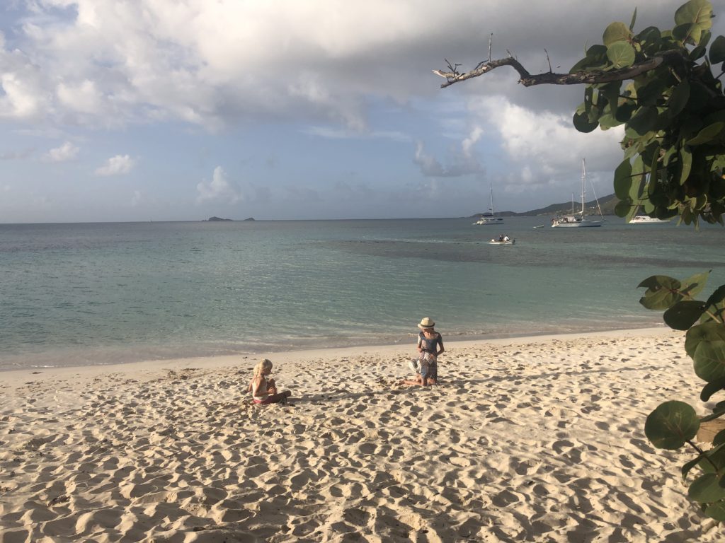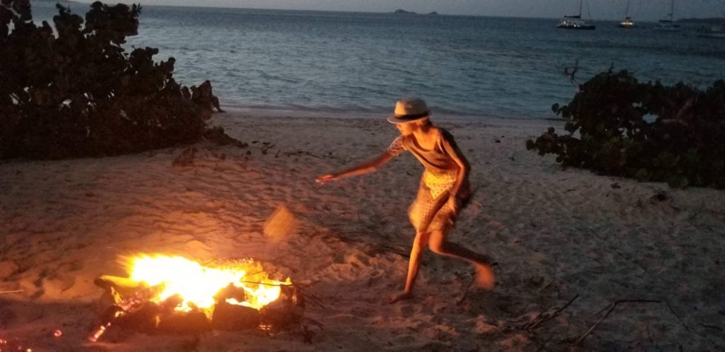 We raken in gesprek met hen en ze vertellen dat ze vanuit St. Vincet naar de BVI’s zijn gekomen om de schade door de hurricanes zijn ontstaan te herstellen. Het is gezellig en samen drinken we biertjes en eten we kippetjes van de bbq terwijl we het vuur blijven opstoken.