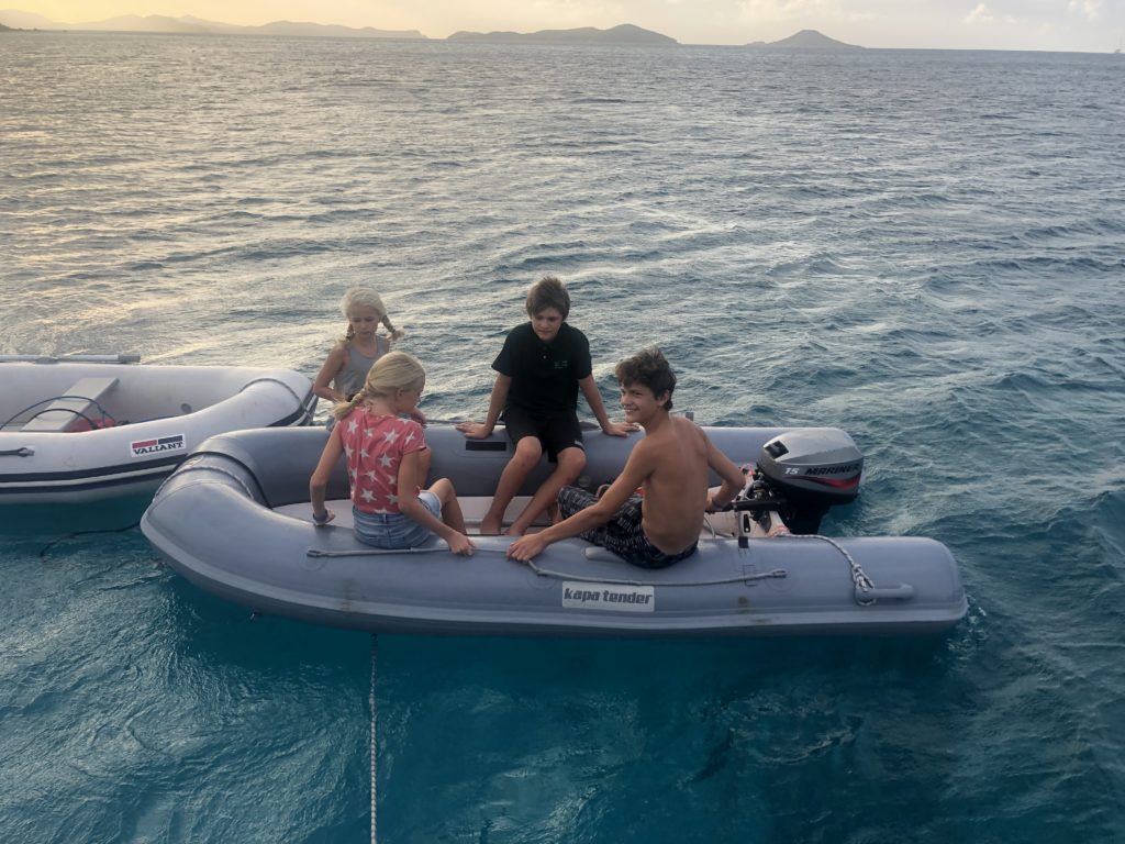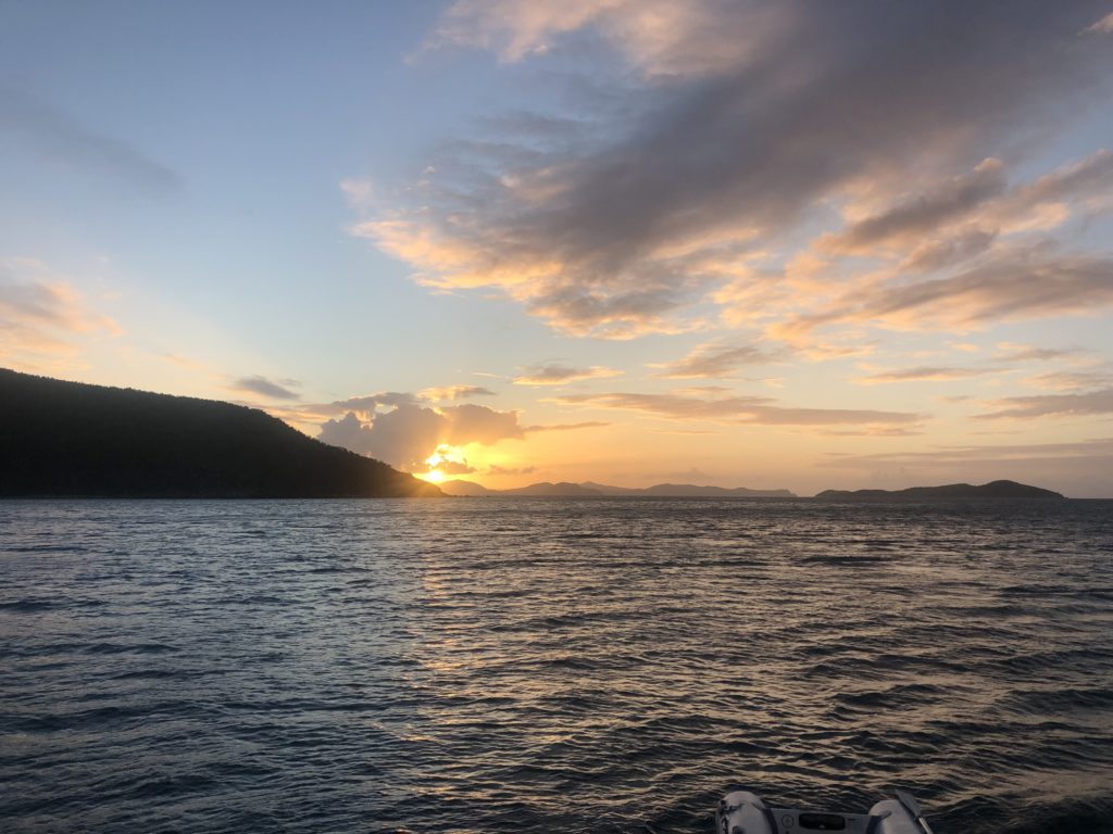 Als we terug zijn op de boot drinken we op Phi op de goede afloop en genieten we van de zonsondergang terwijl de meiden door de jongens van Field Trip worden opgehaald voor een filmavond bij hun aan boord.