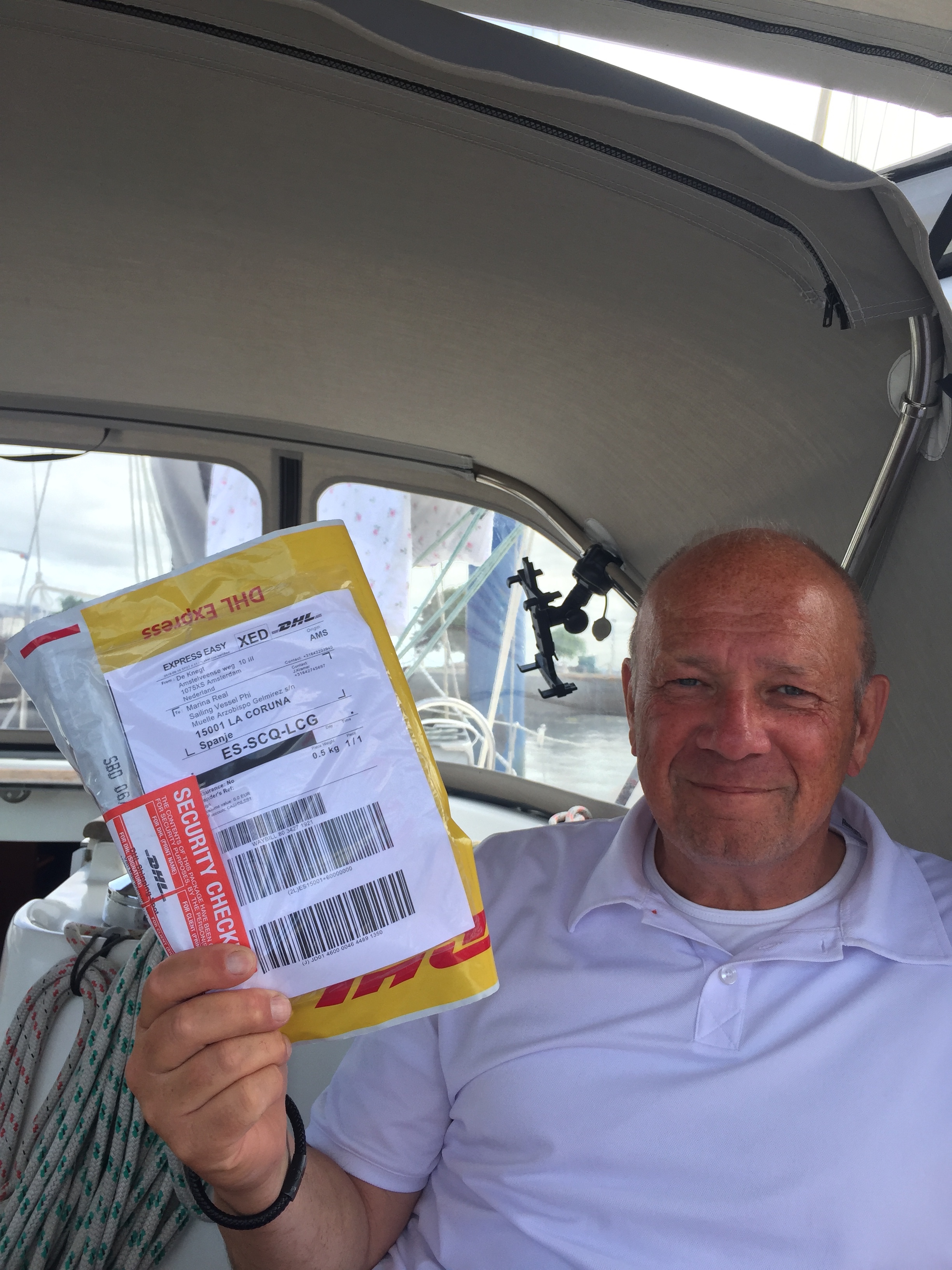 Gerard komt in actie en stuurt de sleutels per expresse met DHL op naar de haven in A Coruña zodat wij de sleutel zaterdag ontvangen…als alles goed gaat. Pas dan kunnen we de vluchten bevestigen.