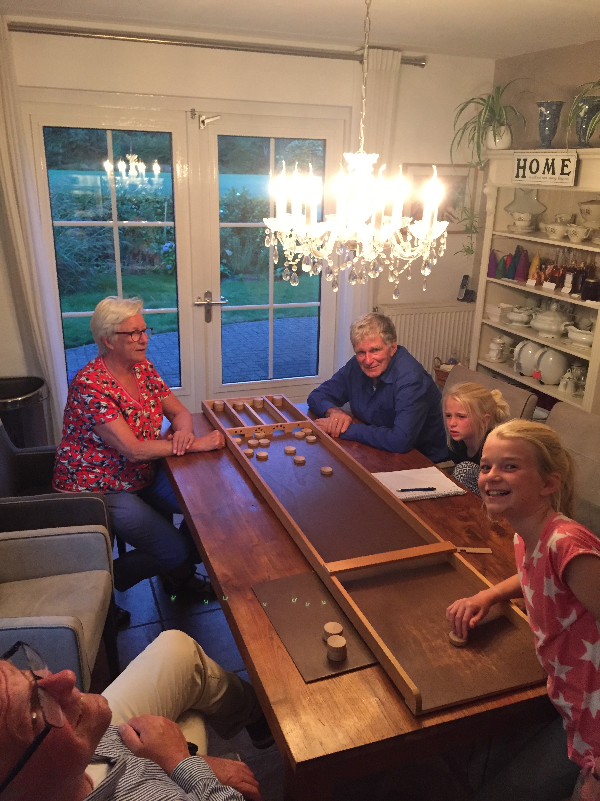 We doen leuke spelletjes van sjoelen tot pijl en boogschieten met eigen gemaakte bogen (en pijlen)..