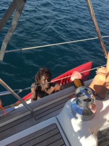 De volgende dag is voor mij een klusdag op de boot. Er is altijd wat te doen en dat gaat het makkelijkste wanneer er ruimte is om te klussen. Mirjam en de meisjes geven mij graag die ruimte en gaan met z’n drieën op pad, met de lokale bus naar een strandje een paar baaien verderop om te snorkelen. Een baai die bekend staat om de zeepaardjes die daar af en toe te zien zijn. En ze hebben geluk! Het snorkelen viel wat tegen omdat het water redelijk troebel was, maar ze zien wel een zeepaardje! Na een drankje en een koude douche op het strand komen ze eind van de middag vol enthousiaste verhalen weer terug. Mirjam had de mobiele VHF mee dus kan mij in dat soort gevallen heel makkelijk oproepen waarna ik hen met de dinghy ophaal. ’s Avonds is het weer ouderwets gezellig en we drinken een gin tonic bij zonsondergang met de mannen van Goodwin. Wat een leven!