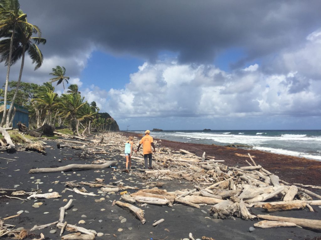 We rijden langs de Atlantische kust en passeren het ene na het andere riviertje. In totaal zijn er 365 rivieren in Dominica. Één voor iedere dag. We stoppen bij een riviertje en genieten van de ongerepte natuur. Het is hier stil en het enige wat je hoort is het kabbelen van het water en de dieren in het bos. We rijden verder en stoppen bij een strand waar Budah met de meiden op zoek gaat naar speciale zaden die hier op het strand aanspoelen. Hij maakt er armbanden van. Ook de meiden krijgen er eentje van hem.