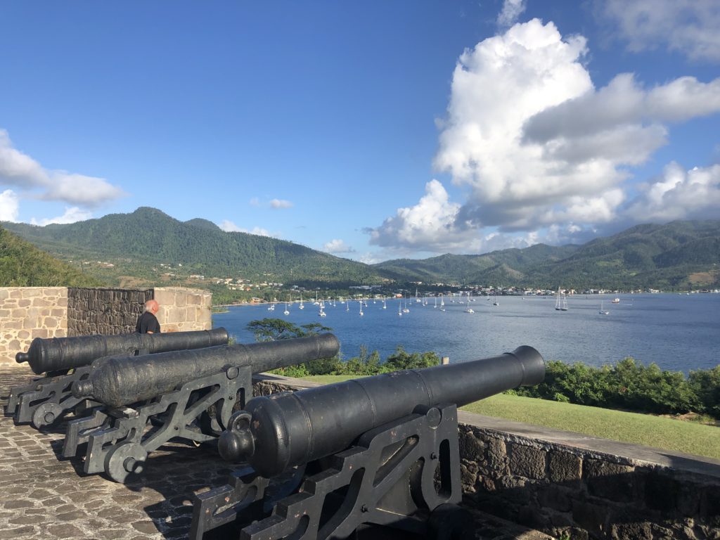 Dominica is een prachtig groen eiland met een groot regenwoud. Het is in 1493 door Columbus ontdekt en die hier op een zondag aankwam. Vandaar de naam Dominica. Het ligt tussen de twee Franse eilanden Martinique en Guadeloupe in en is onafhankelijk. Terwijl we langs de kust van Dominica varen, zien we de effecten van de orkaan Maria die hier in 2017 overheen raasde. Ondanks het vele groen, zie je nog steeds veel verwoesting. Bomen zijn ontworteld of helemaal kaal.