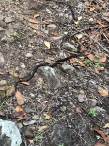 Onderweg komen we onze eerste slang tegen die ons pad kruist. Mirjam gilt het uit, zij heeft het niet zo op slangen. Gelukkig is het geen gevaarlijke slang, maar toch moet je hier oppassen. De gevaarlijke Boa Constrictor leeft hier ook in de wouden en die kom ik niet graag tegen.