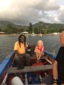 De volgende ochtend staan we voor zonsopgang op en staan klaar om opgepikt te worden door Anthony. Anthony met zijn boot Seabird was de eerste die ons in Dominica ontving toen we de baai van Portsmouth invoeren.