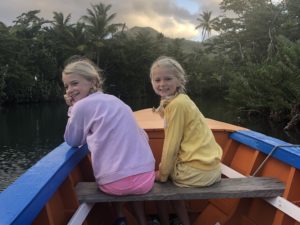 Op het strand gaan de meiden nog een keer met Budah op de foto en daarna brengt hij ons terug naar de boot. We hebben hem uitgenodigd om bij ons aan boord iets te komen drinken maar hij moet nog weg en het is al laat. Hij belooft ons morgen om fruit uit zijn eigen tuin te brengen. Moe en voldaan, vol met mooie indrukken gaan we vroeg slapen. De volgende ochtend worden we namelijk voor zonsopgang opgehaald voor een tocht over de Indian River.