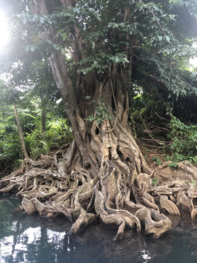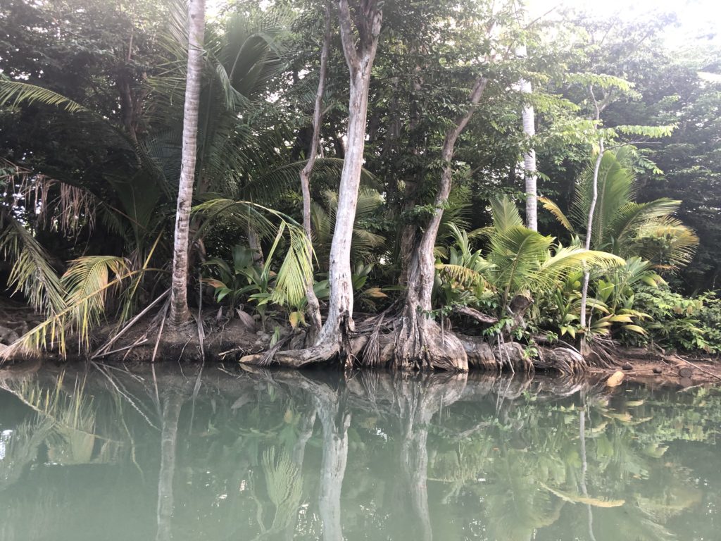 Vroeger was de rivier helemaal overkapt door bomen en voer je door een tunnel van groen. Door de orkaan zijn de meeste toppen kapot gewaaid en is het helemaal open.
