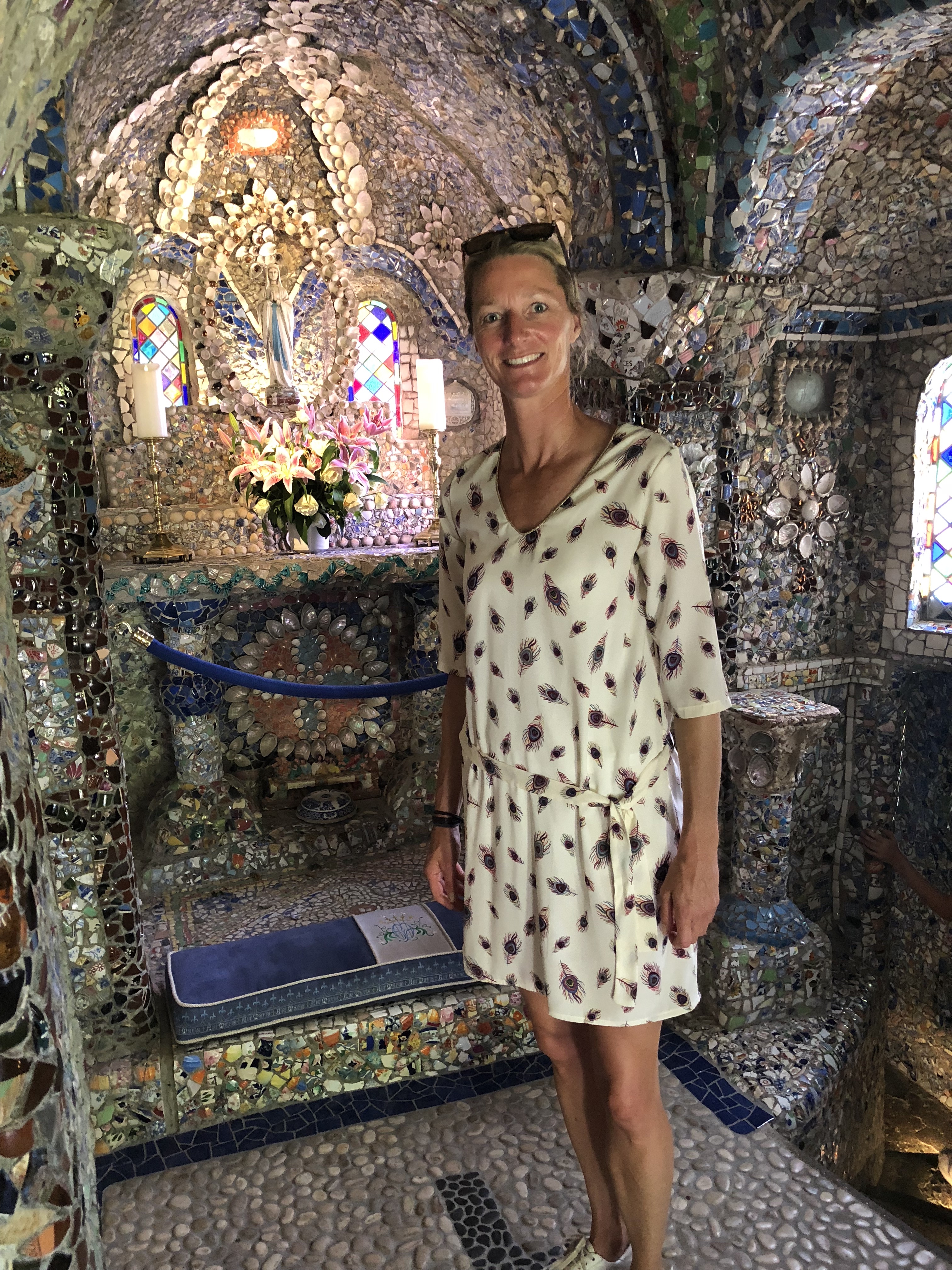 De kapel is prachtig gedecoreerd met schelpen, keitjes en kleurige stukjes porselein.