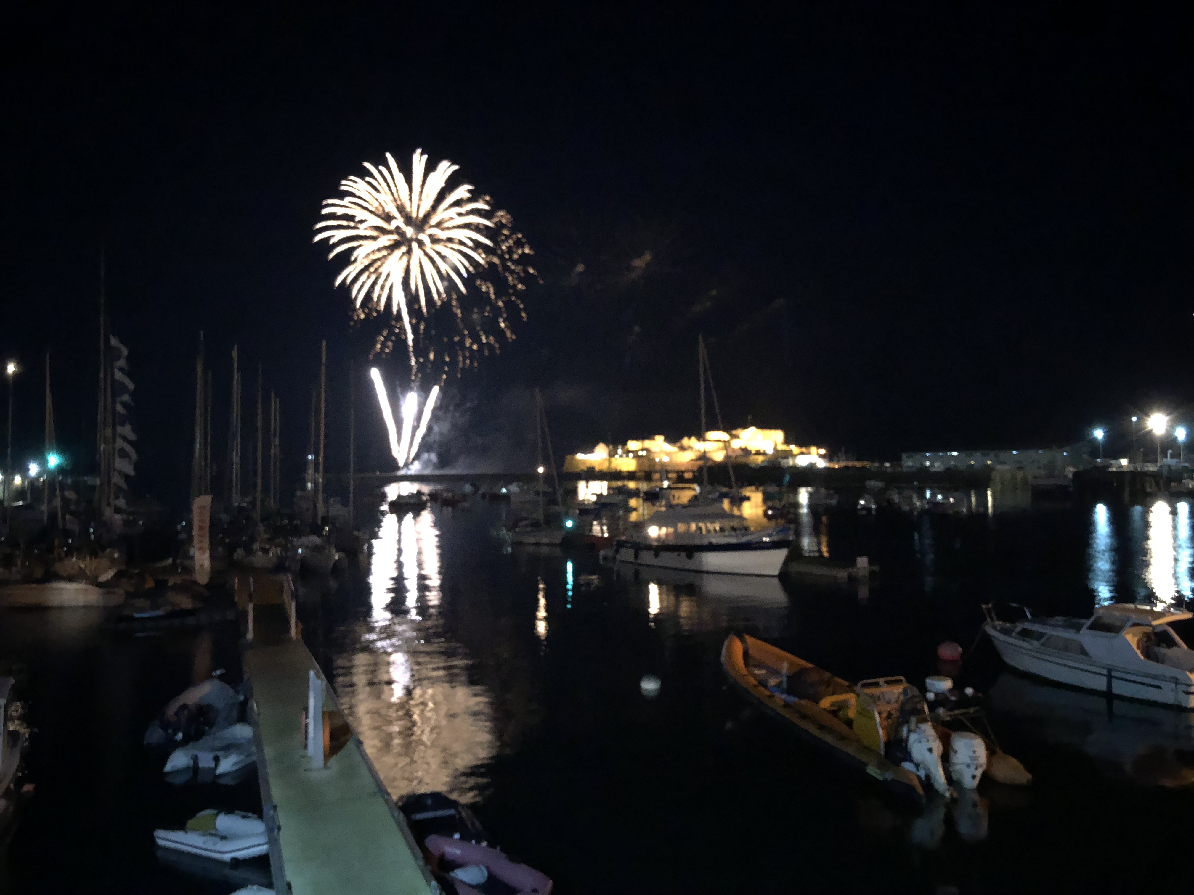 Ook wilden we Harald en Sophia ergens aan de noordkant van Guernsey weer ontmoeten om met zijn allen ergens te gaan dineren maar dat gaat niet lukken omdat er geen bus van onze plek die kant op gaat. We gaan daarom maar terug naar Saint Peter Port en gaan daar vanavond eten. Het is een gezellige avond en als we teruglopen naar de boot, start een prachtig vuurwerk. Guernsey, bedankt voor de heerlijke dagen!