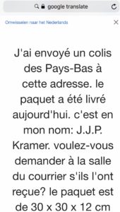 De volgende ochtend ga ik weer naar het havenkantoor voor mijn pakketje. Het is er nog steeds niet terwijl het volgens de tracking al is afgeleverd. Ik laat het adres zien en wat blijkt dat is niet het juiste adres maar het adres van een financiële holding ergens in het centrum. Om daar te komen heb je eigenlijk een auto nodig en die hebben we gisteren net teruggebracht. Gelukkig zie ik een wagen met het bedrijfslogo er op en vraag of ik mag meerijden. Nu is mijn Frans niet echt goed en het is lastig om uit te leggen dat er een pakje van mij op een verkeerd adres is afgeleverd aan iemand die alleen Frans spreekt (zoals alle mensen uit Martinique, lijkt het). Ik tik de tekst in op Google translate en laat het aan iedereen zien.