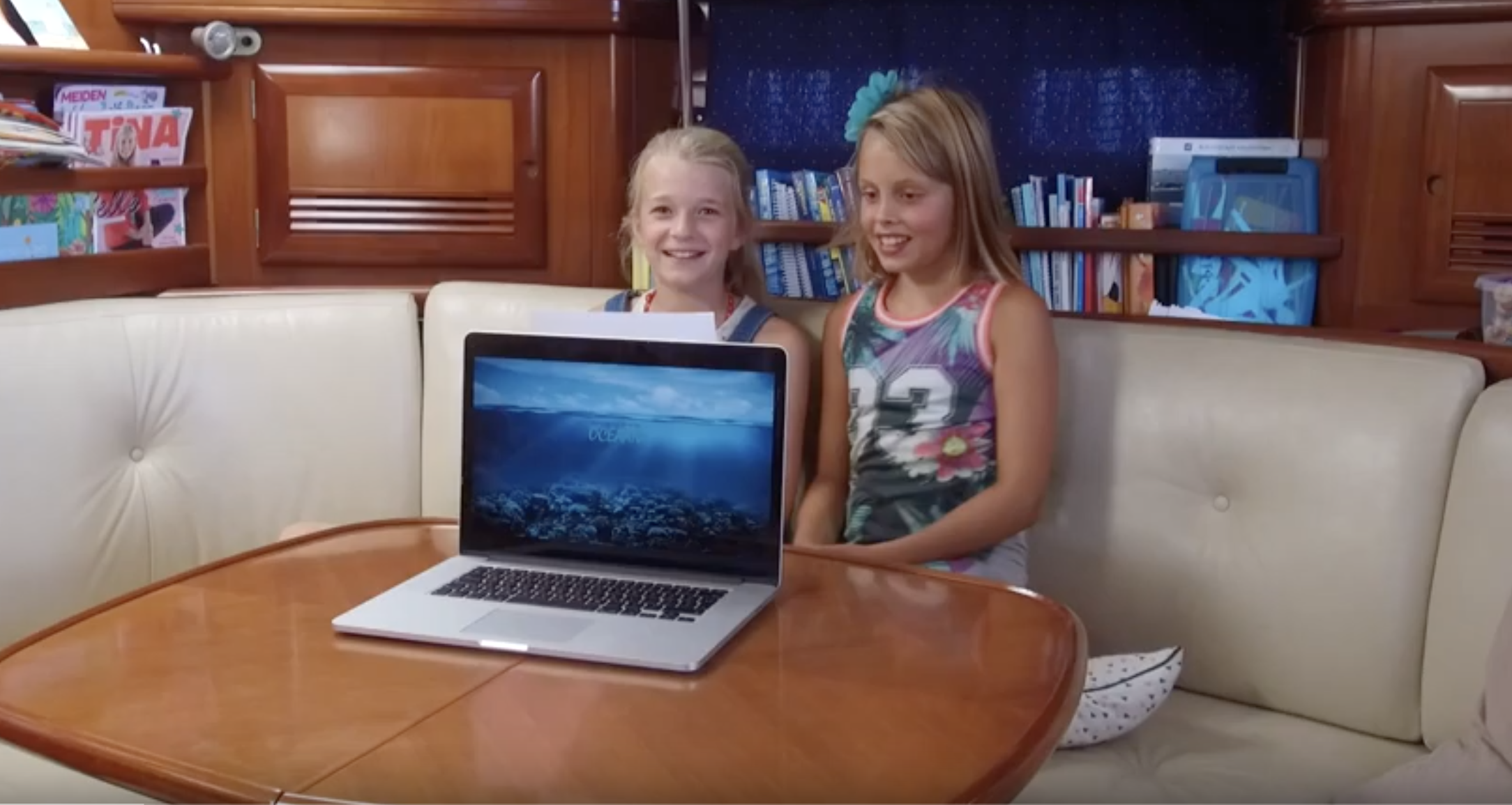 Kiki en Yara houden hun spreekbeurt over de oceanen.