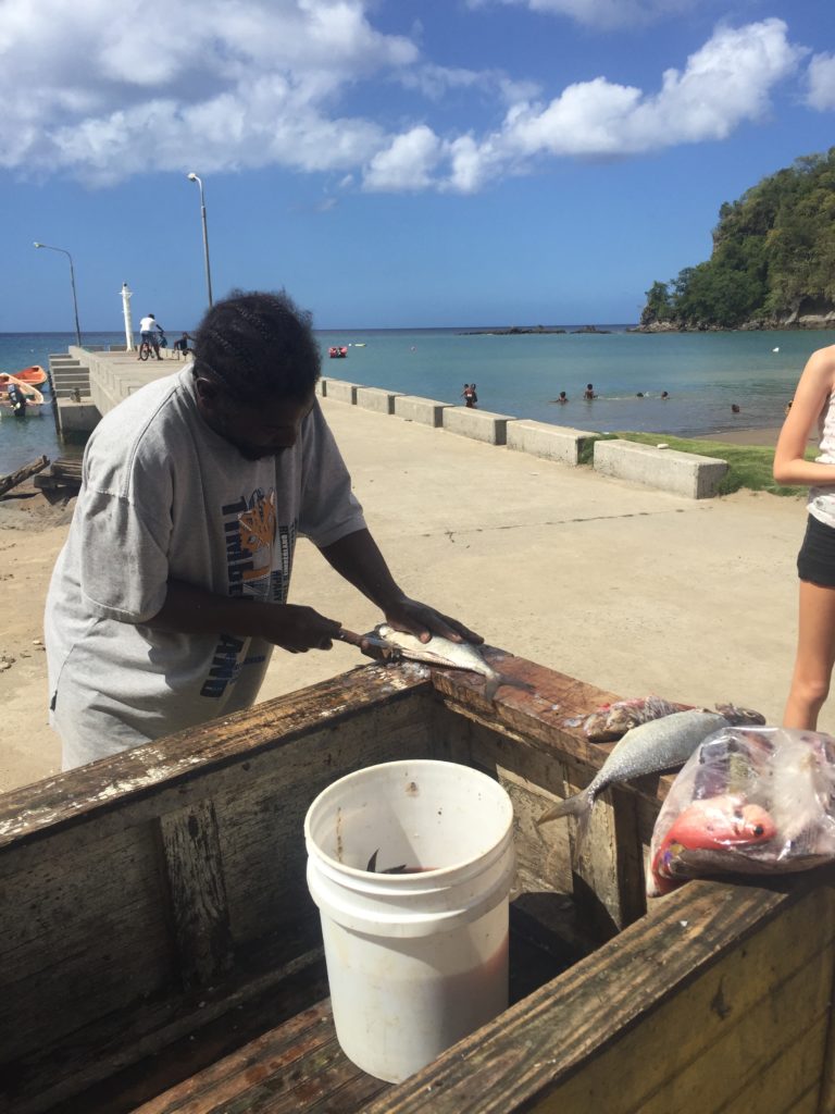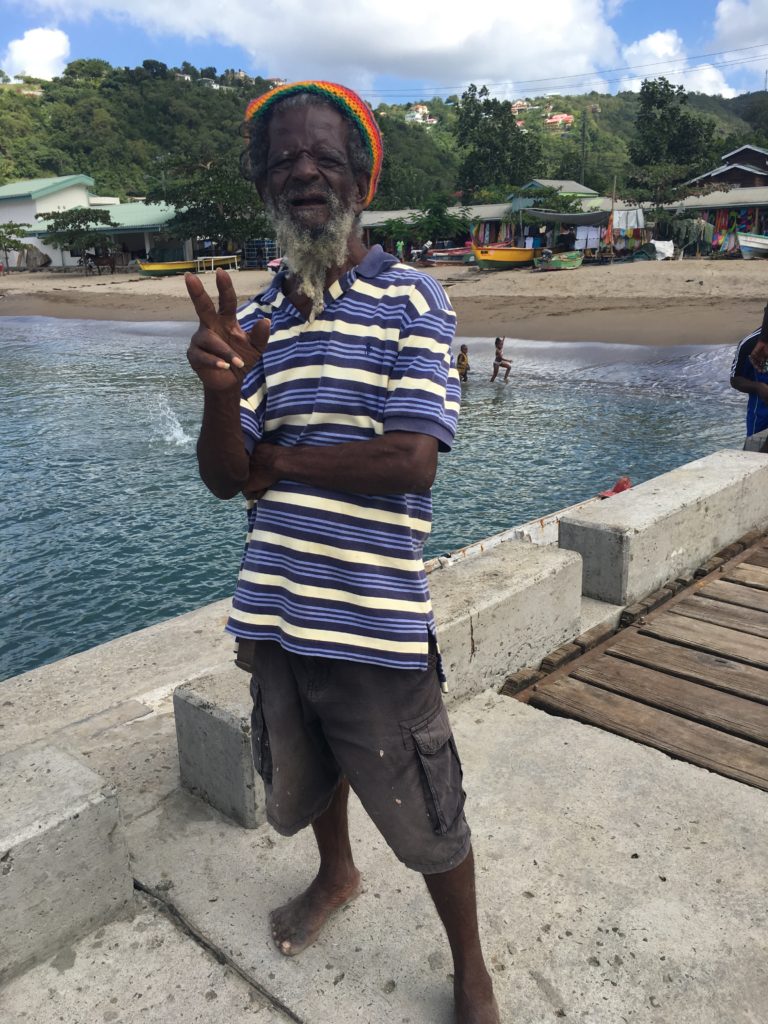 Hier is eigenlijk niet veel te doen, dus gaan we verder naar het plaatsje Ans La Raye, een vissershaven. Daar eten we wat van de lokale vis en lopen over de pier.