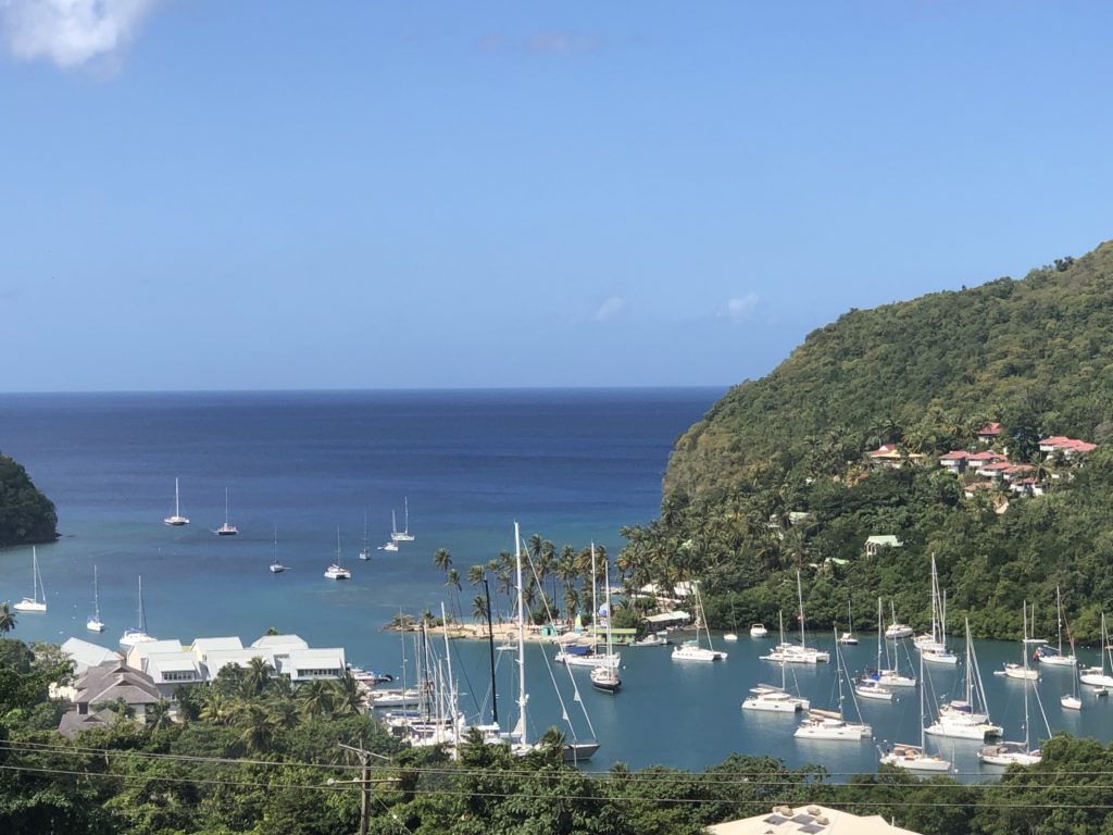 Marigot Bay is een natuurlijke haven die ook gebruikt wordt als hurricane protection place.