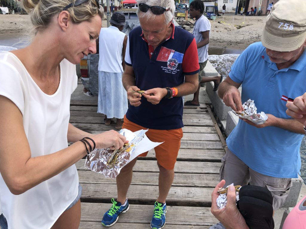 We nemen een taxi en rijden naar het feest. Met de andere zeilers wisselen we ervaringen uit. Iedereen is trots op het halen van de overkant en iedereen heeft wel een verhaal wat ze hebben meegemaakt. Het één nog mooier dan de ander…