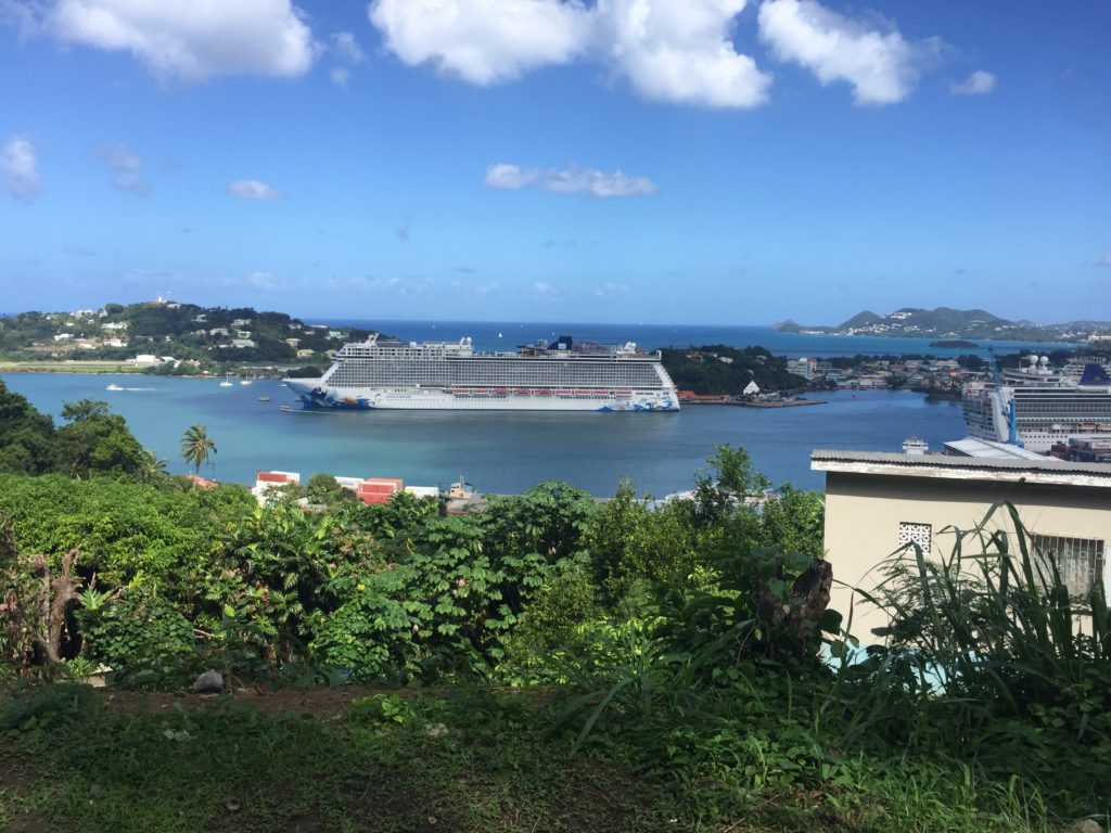 Michael laat ons de prachtige natuur zien van St. Lucia en weet daar mooi over te vertellen. We rijden eerst langs de kust naar Castries. Een grote plaats waar de cruiseschepen aanleggen.