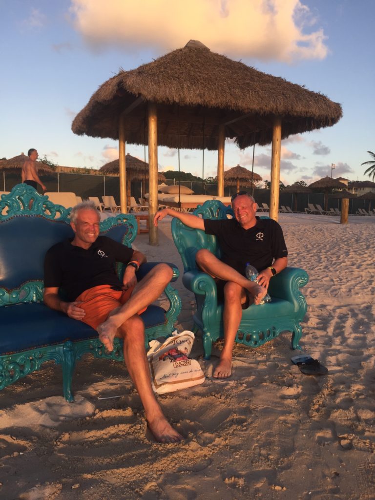 Omdat het meubilair van het hotel midden op het strand staat, vinden we dat het ook publiek toegankelijk is en zoeken een heerlijke stoel uit. Terwijl Mirjam en Angela mooie gesprekken voeren en veel overeenkomsten ontdekken, evalueren Sven en ik nog de reis van afgelopen drie weken. Sven vertelt dat hij mij met hele andere ogen heeft gezien tijdens de reis en wat ik zo leuk heb gevonden de afgelopen drie weken, is dat mijn contact met Sven heel intensief is geweest.