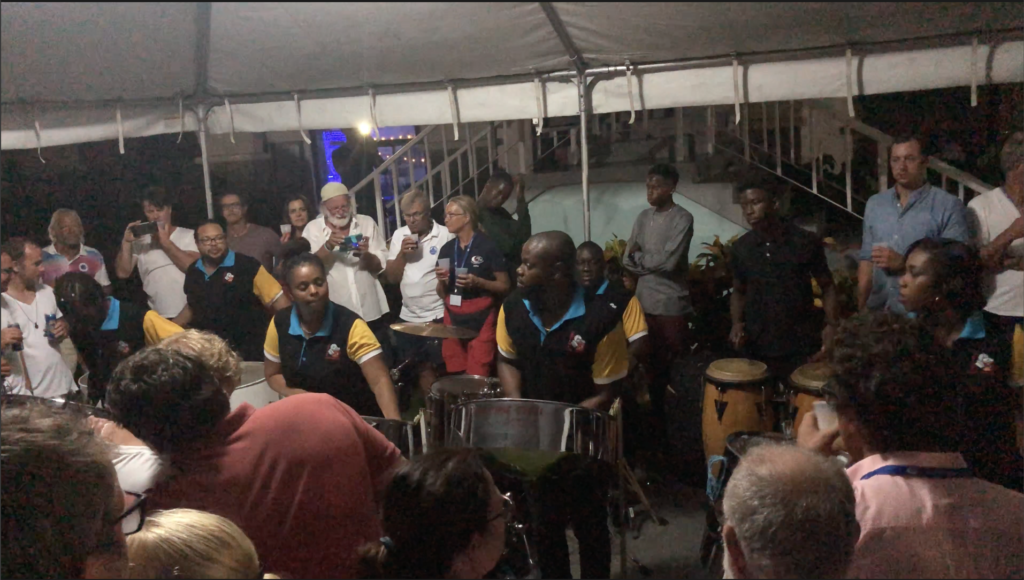 Dat moet gevierd worden. Iedere avond is er wel ergens een party en vanavond wordt dat georganiseerd en gesponsord door de directie van de haven. Naast bier drinken we ook rumpunch. Een typische cocktails uit de Carieb die drinkt als limonade. Er is een optreden van een steelband die kerstliedjes speelt, indrukwekkend.