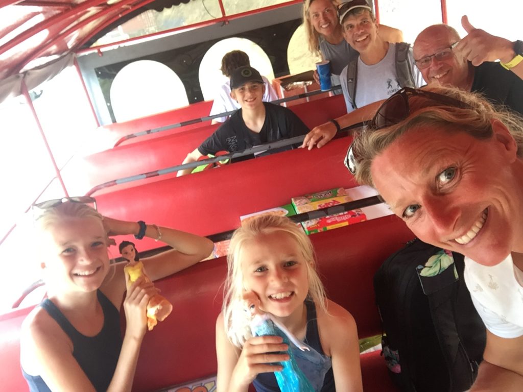 We lopen de stad in en wat opvalt is een mengelmoes van Caribische en Amerikaanse stijl. Je ziet oude huizen en straatventers tussen de McDonalds en K-Mart in. We gaan de K-Mart in en worden overwhelmd door het grote aanbod. Volgens Andrea is dit nog maar een hele kleine K-Mart. De meiden kijken hun ogen uit en vinden al snel mooie barbiepoppen en met puppy ogen kijken ze me aan en met hun liefste stemmetje vragen ze of ze die mogen kopen. Voldaan lopen ze ieder met hun eigen barbie de winkel uit. Met de nodige nieuwe aankopen varen we weer terug naar Field Trip die rustig ligt te deinen op de golven in de baai. Er liggen inmiddels drie grote cruiseschepen en het is een indrukwekkend gezicht als je er vlak langs vaart met de dinghy.
